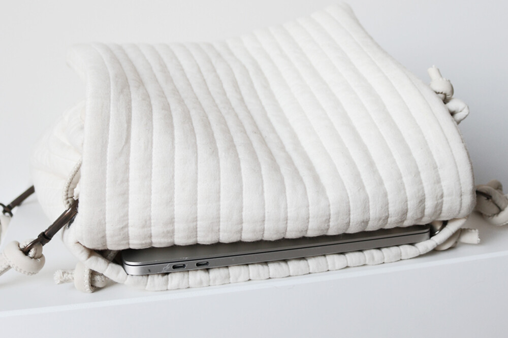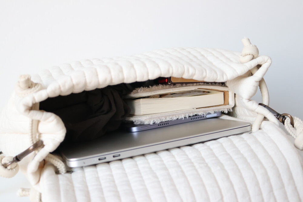 수납공간은 13인치 노트북, 파우치, 아이패드, 다이어리, 등 너무 크지 않은 물품은 수납 가능하십니다 ♡