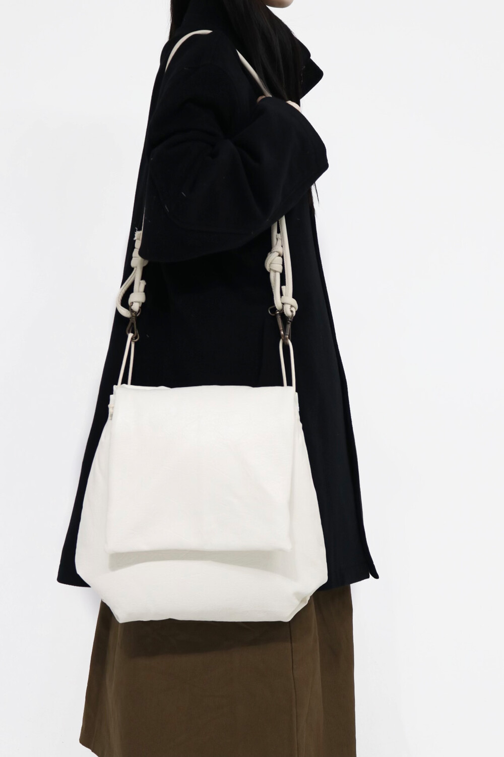 가방 끈의 매듭이 길이 조절가능한 매듭으로 묶여있습니다 :)