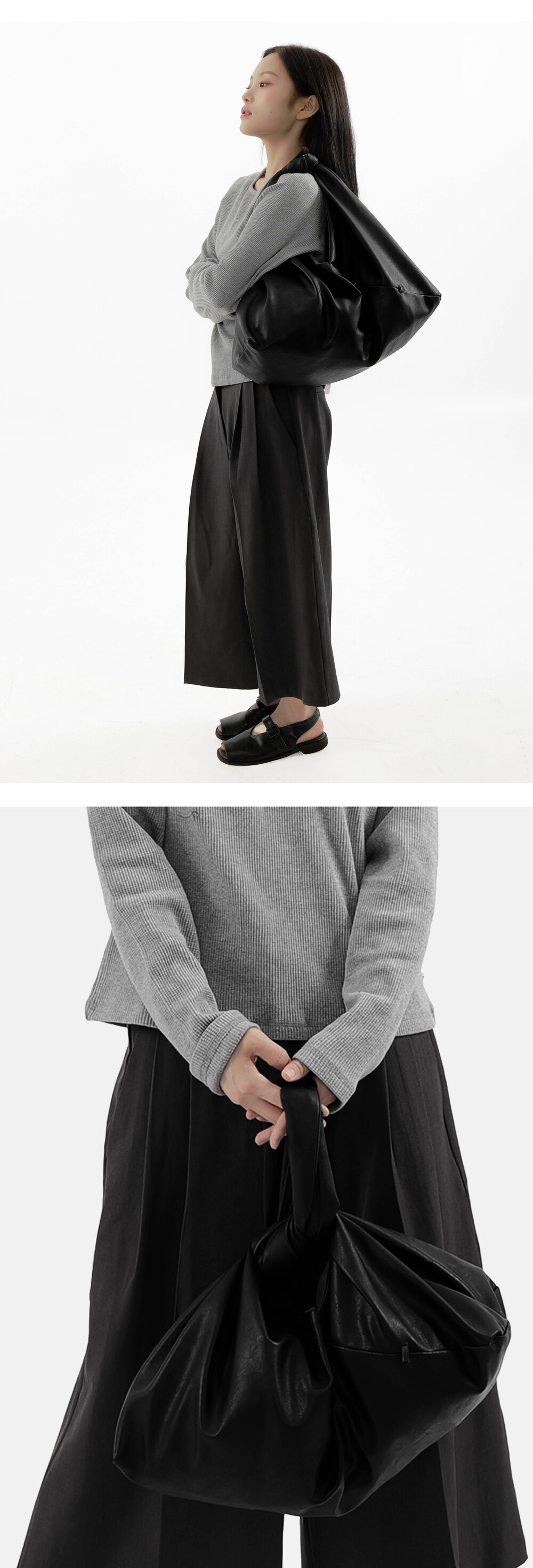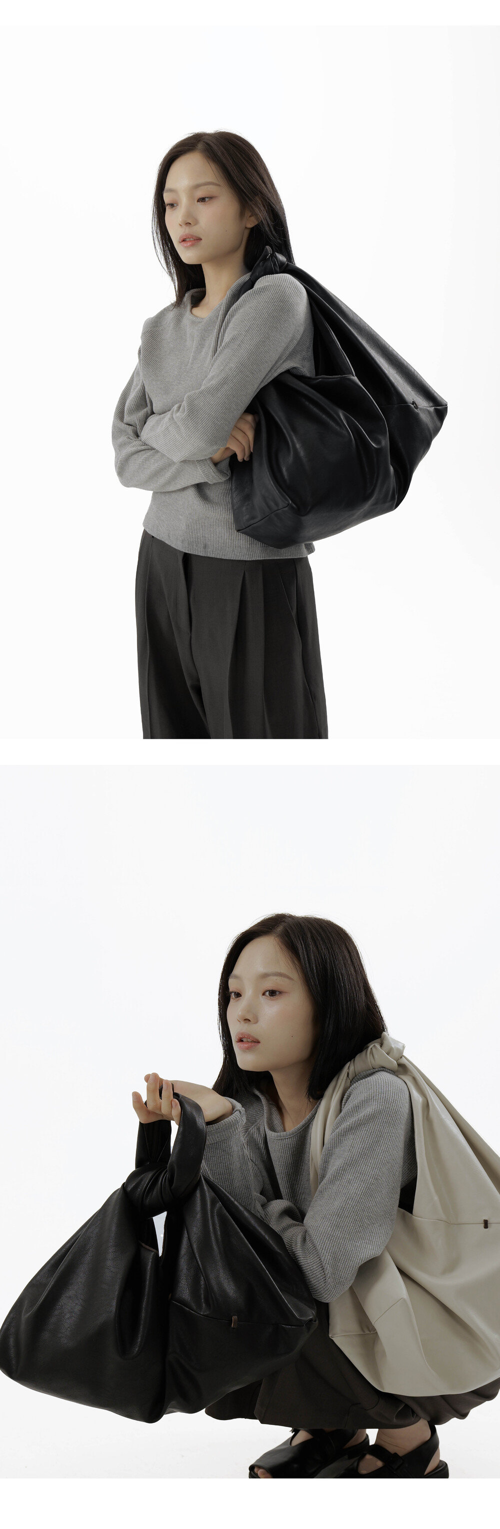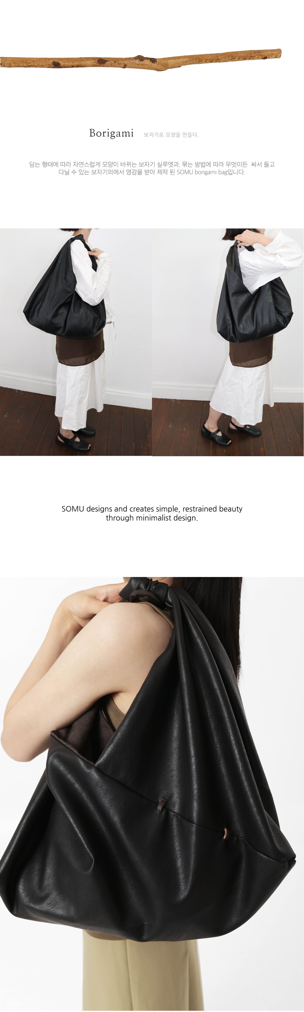 -보자기처럼 자연스럽게 흐르는 실루엣의 디자인에 SOMU의 시그니처 Wood stitch 디테일로 포인트를 주었습니다.