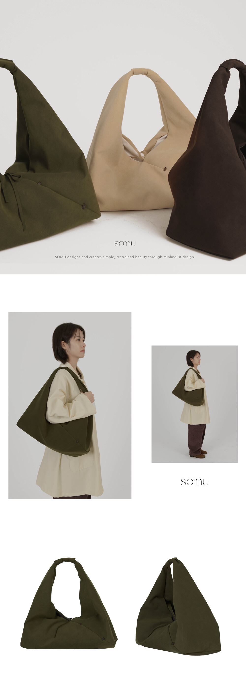 -아래로 떨어질수록 볼륨감 있는 디자인에 SOMU의 시그니처 Wood stitch 디테일로 포인트를 주었습니다.