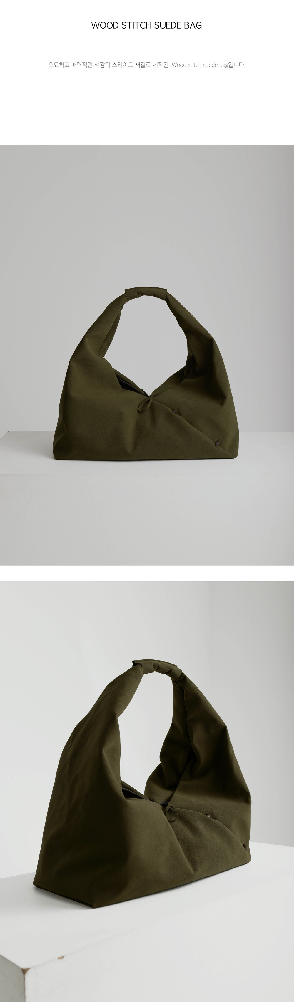 Wood stitch suede bag-matcha khaki