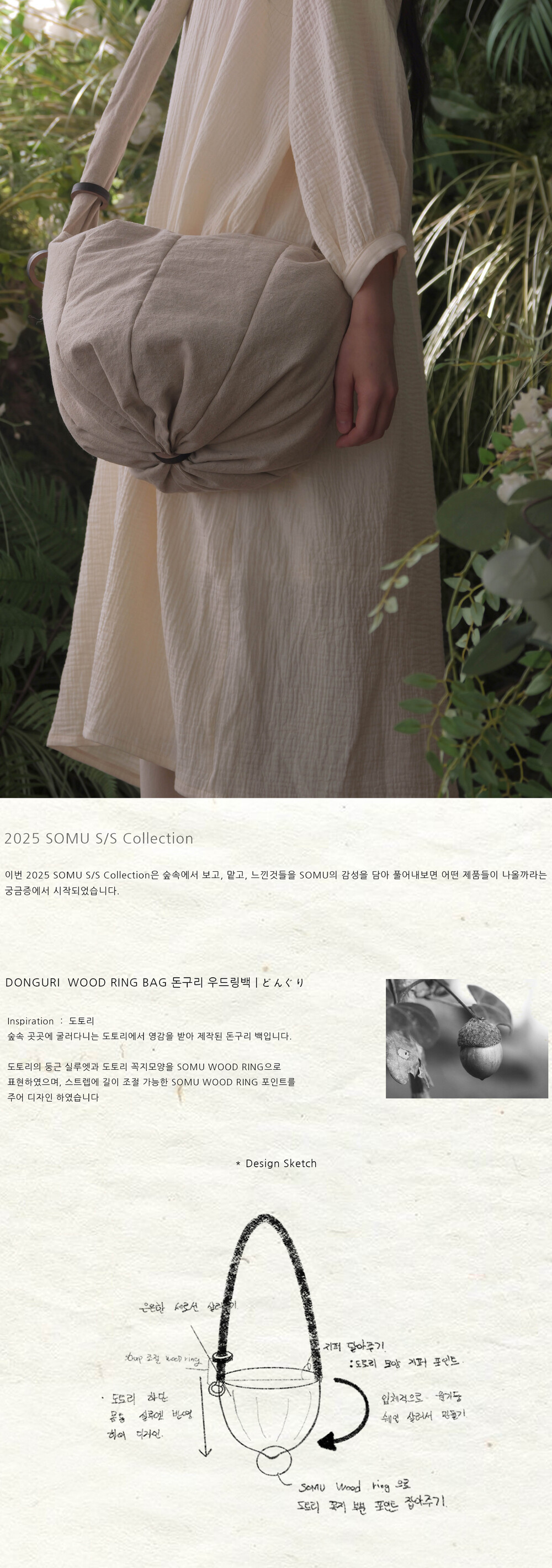 -도토리에서 영감을 받아 제작된 DONGURI WOOD RING BAG _ linen 입니다.