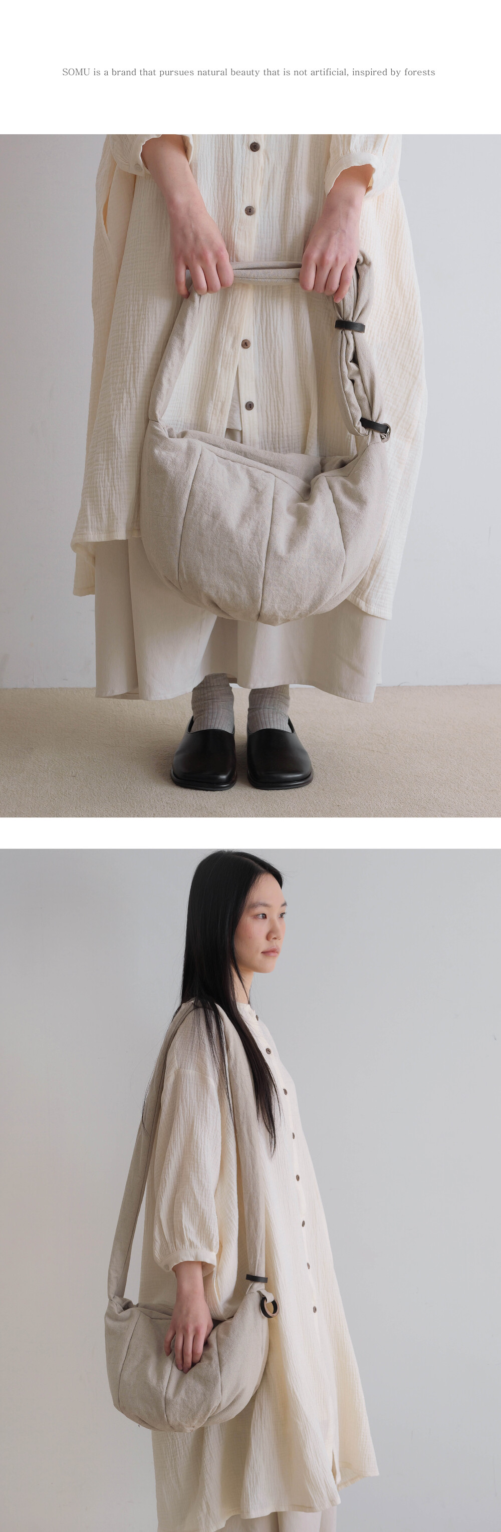 -SOMU WOOD RING 통해 스트랩 조절이 가능하여 Shoulder bag / Cross bag 두가지 타입으로 착용 가능합니다