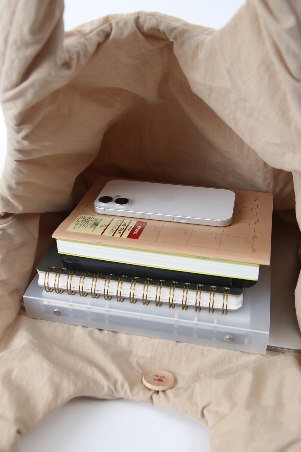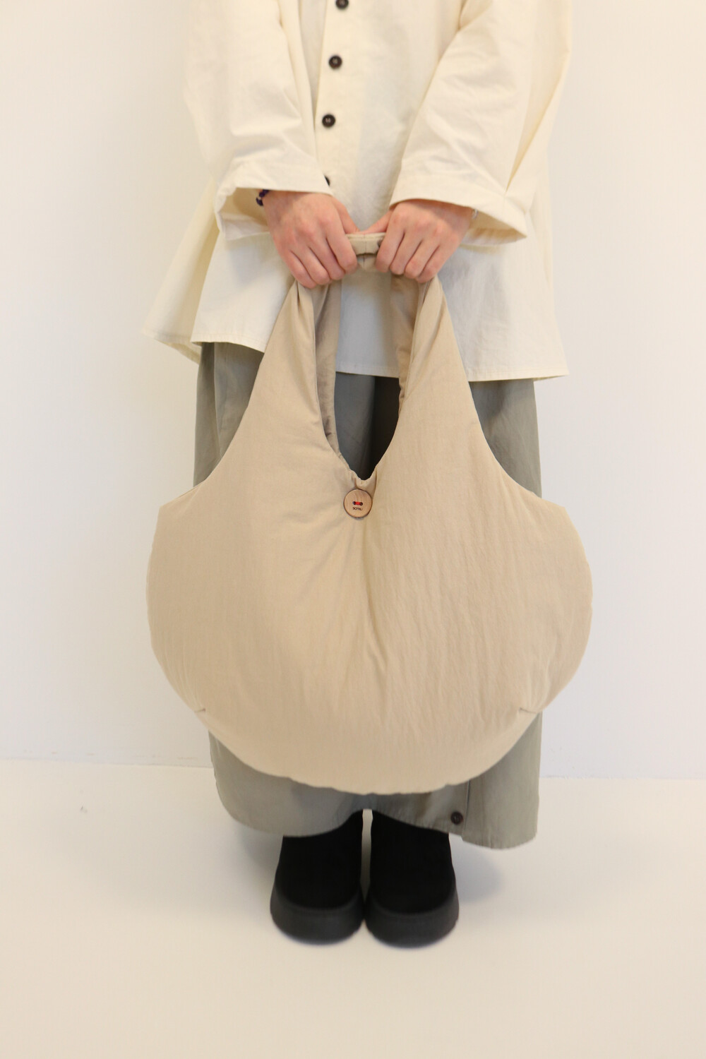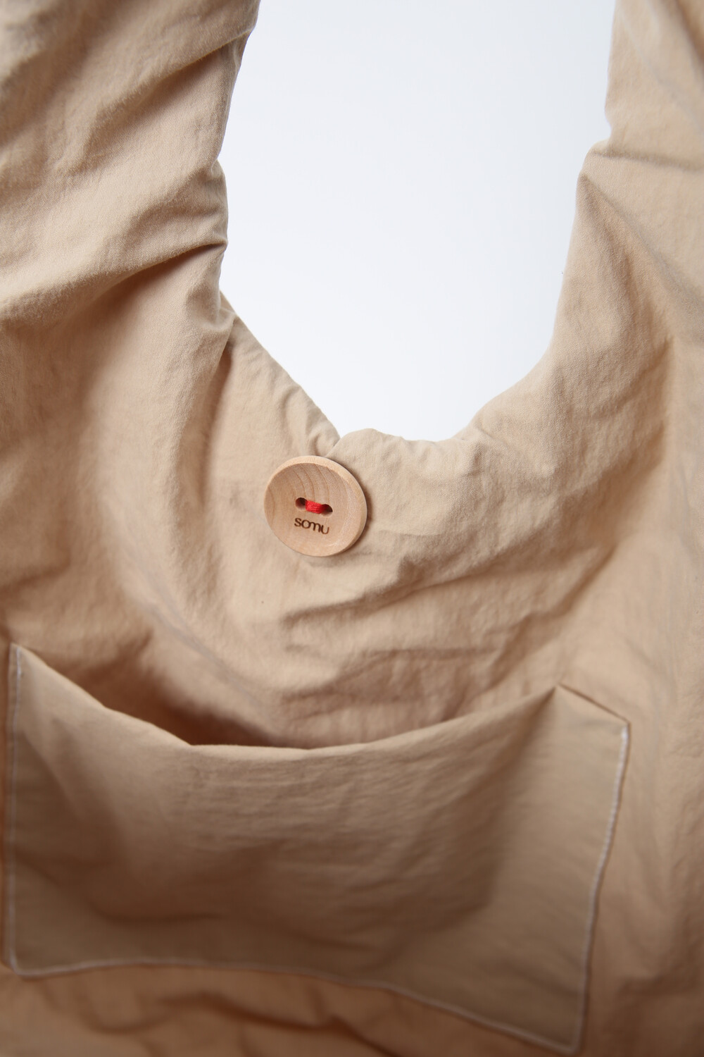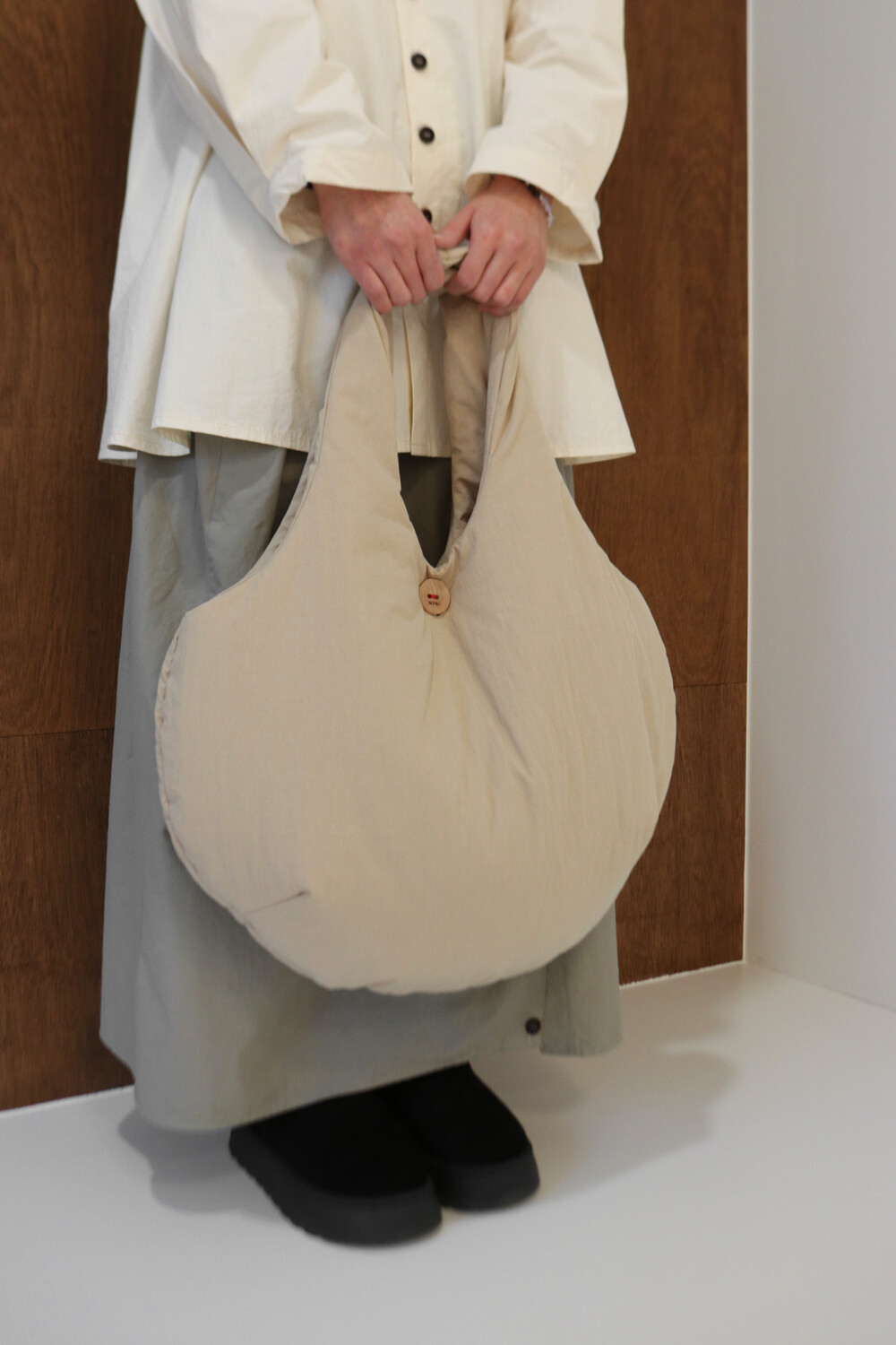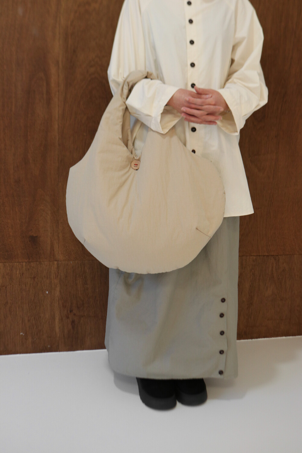 -도라야끼를 닮은 귀여운 원목 단추 여밈과,둥글고 부드러운 라운드 쉐입이 특징인 Dorayaki butten bag입니다.