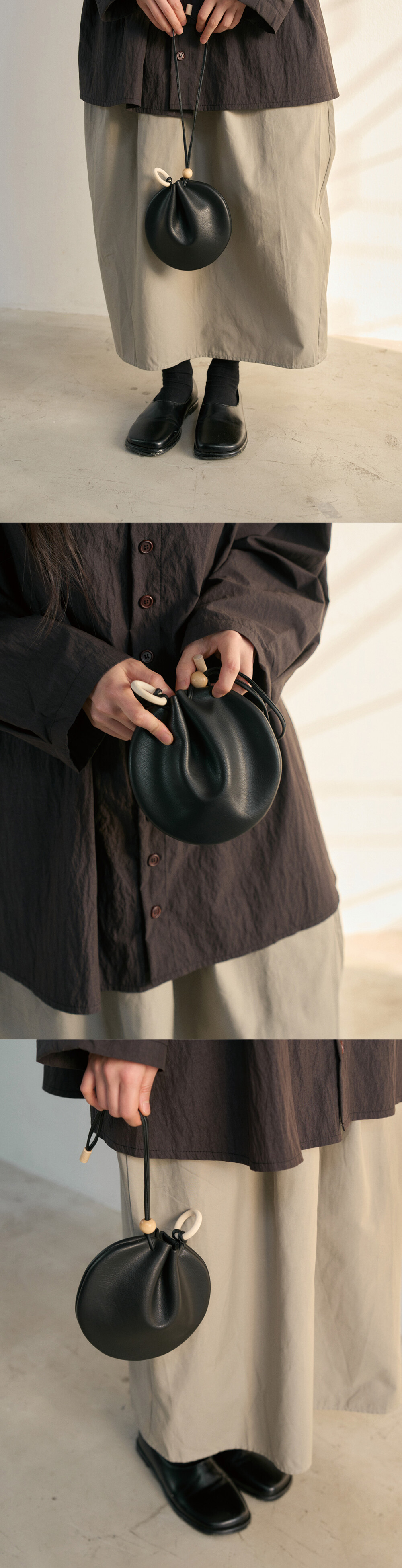 -각이 진 요소를 배제하고 동그란 실루엣과 입구를 조일 때 자연스럽게 잡히는 주름의 곡선, 원목 구슬과 링 같은 부드러운 실루엣만을 사용해 귀엽지만 과하지 않는 SOMU의 미니멀함을 담아냈습니다.