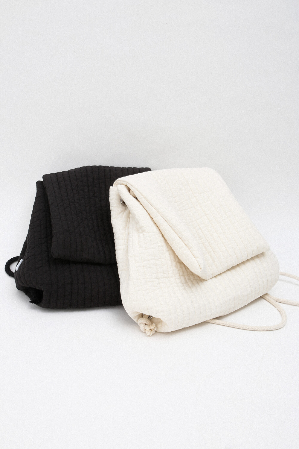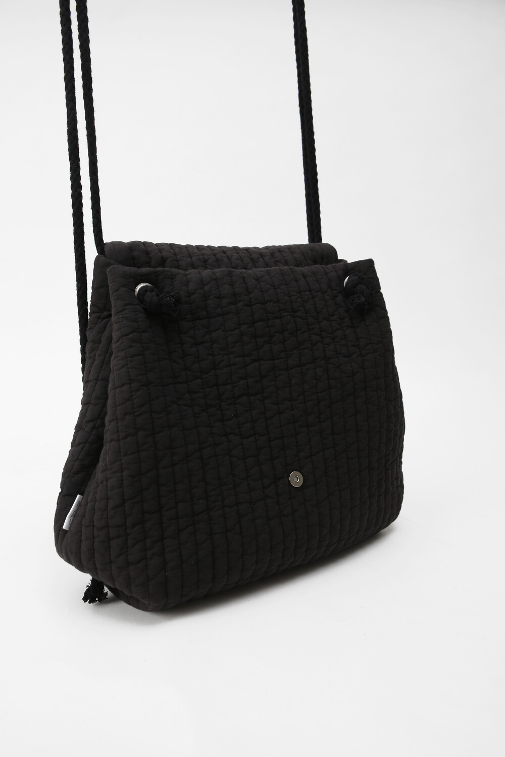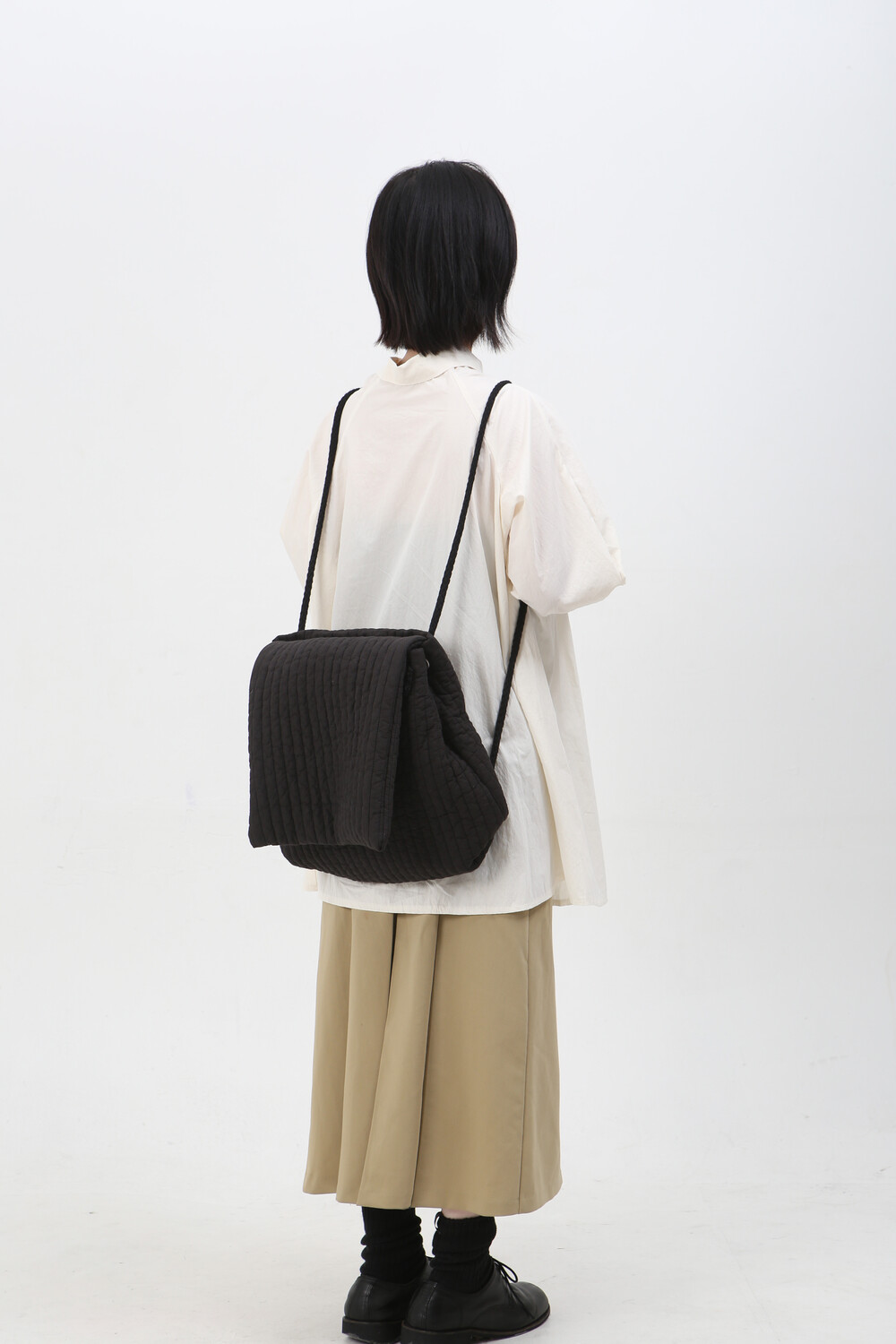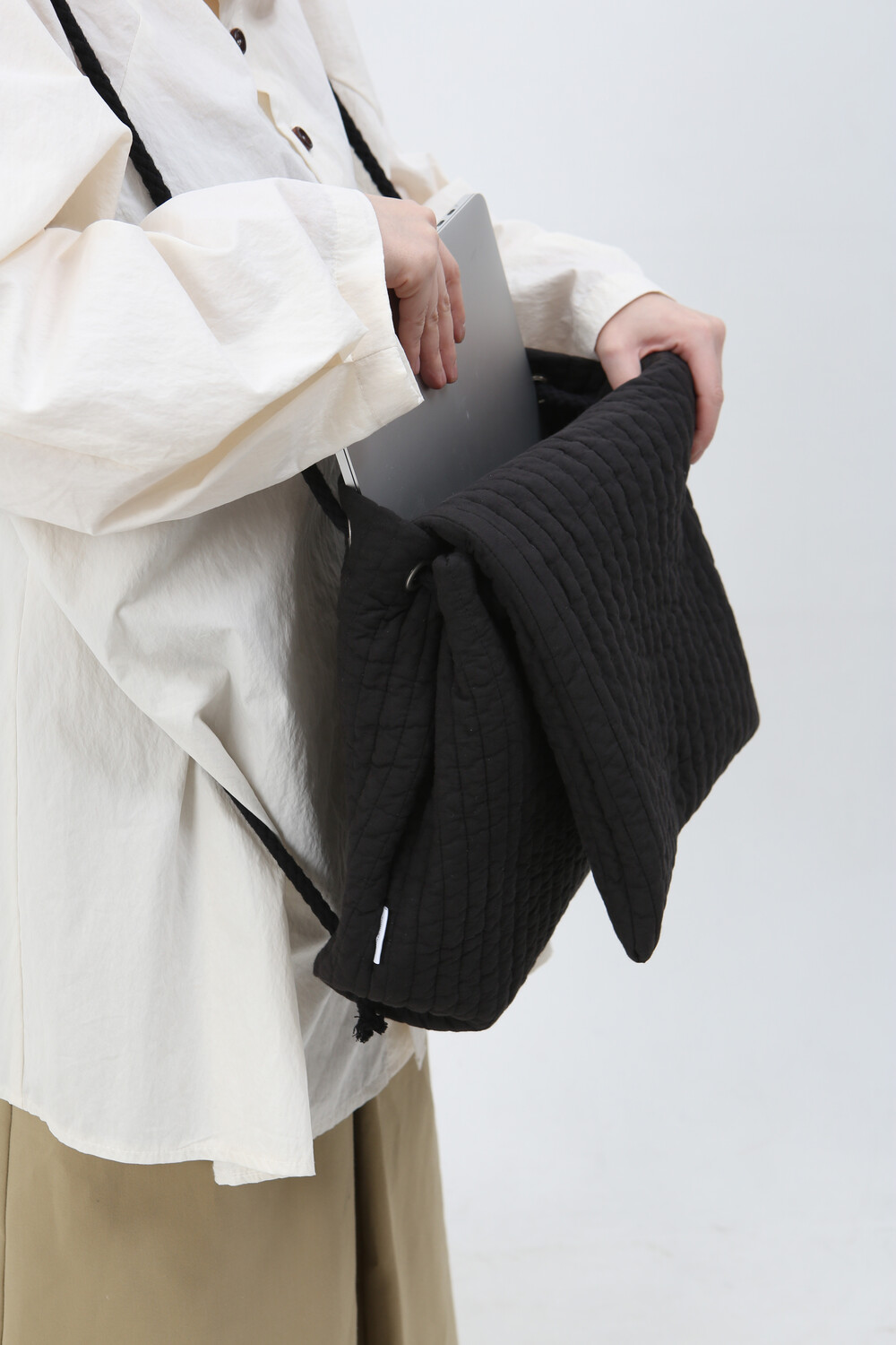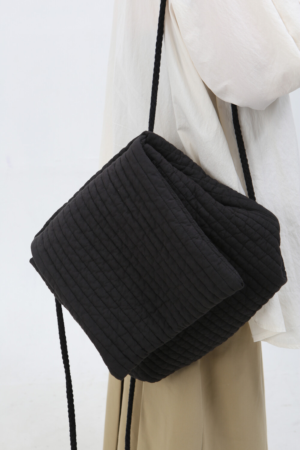 -볼륨감 있는 실루엣과 퀼팅 원단으로 제작된 round quilting bag입니다 .