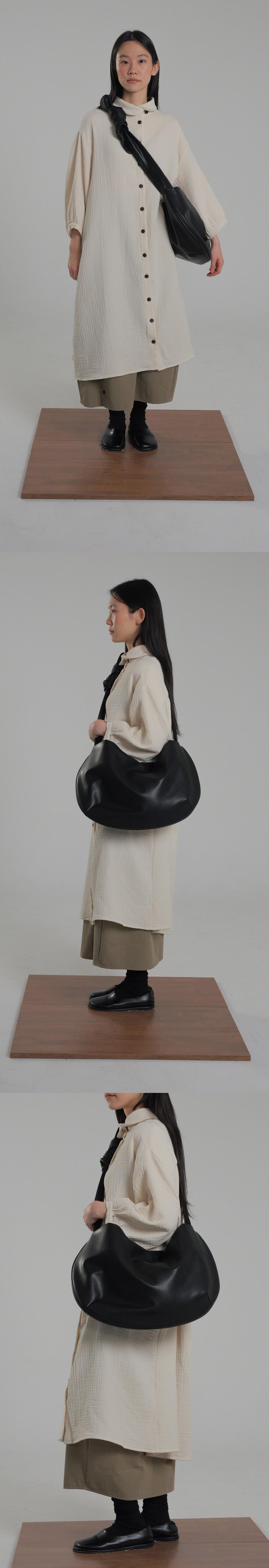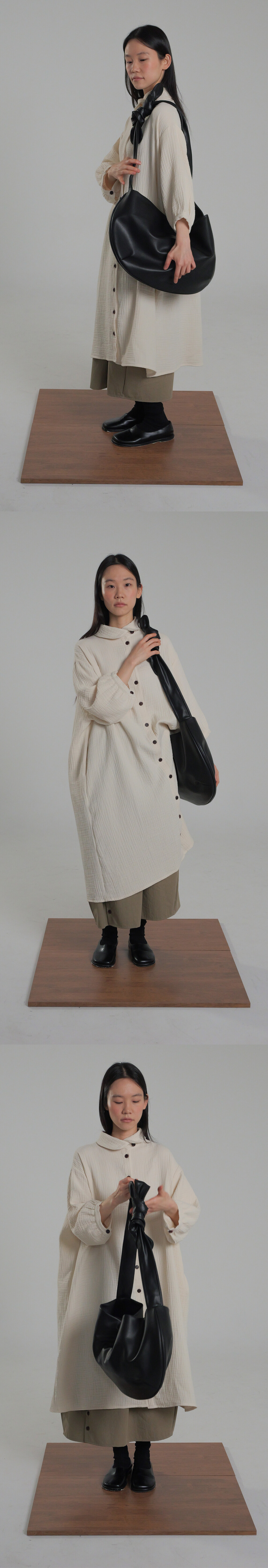 -스트랩에는 라운드 포인트 디테일을 더해 미니멀한 무드를 살렸으며, 매듭 위치에 따라 숄더와 크로스 두 가지 연출이 가능합니다.